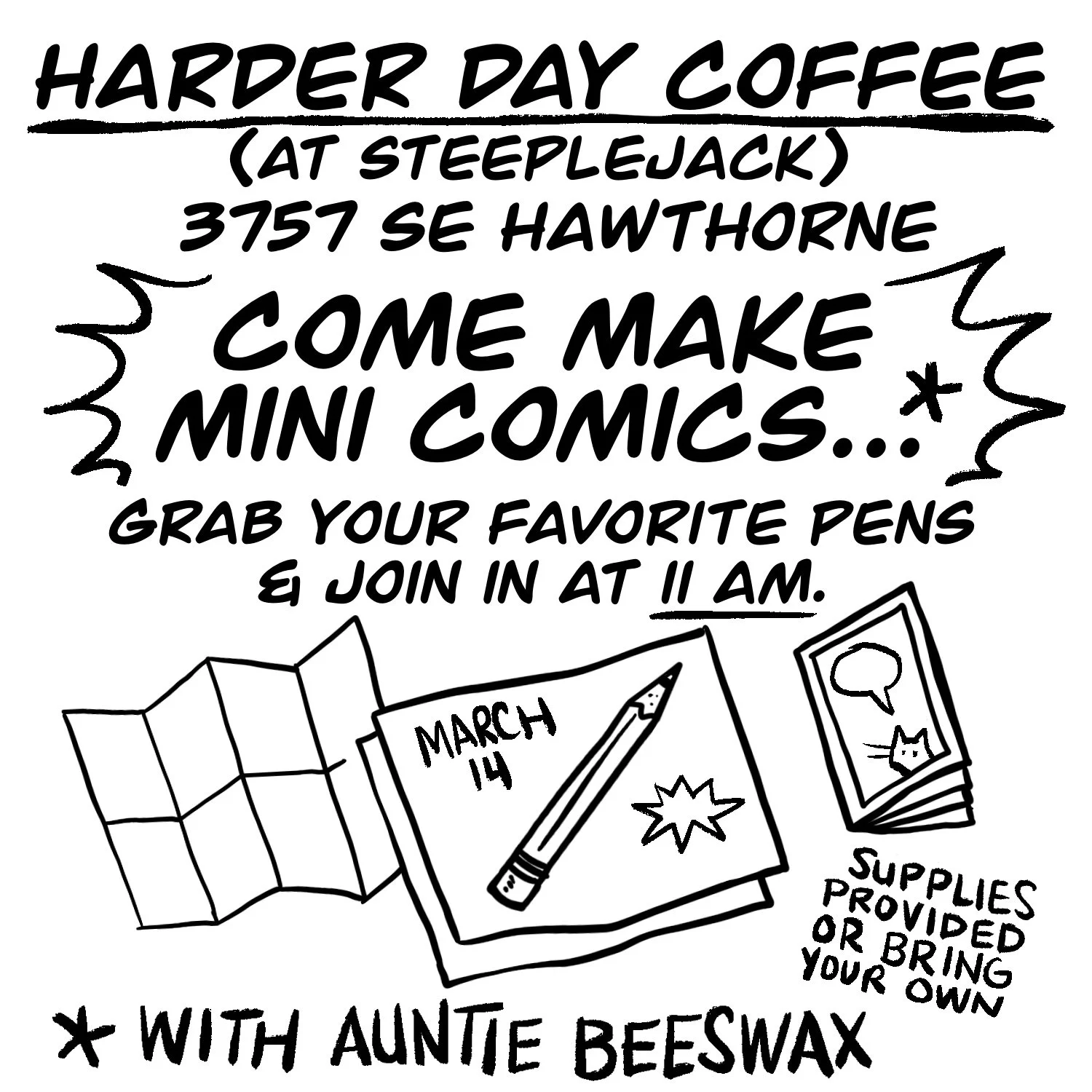 March 14: Mini-Comics Day- Harder Day Coffee, Hawthorne Blvd. PDX, 11am to 1-ish?
